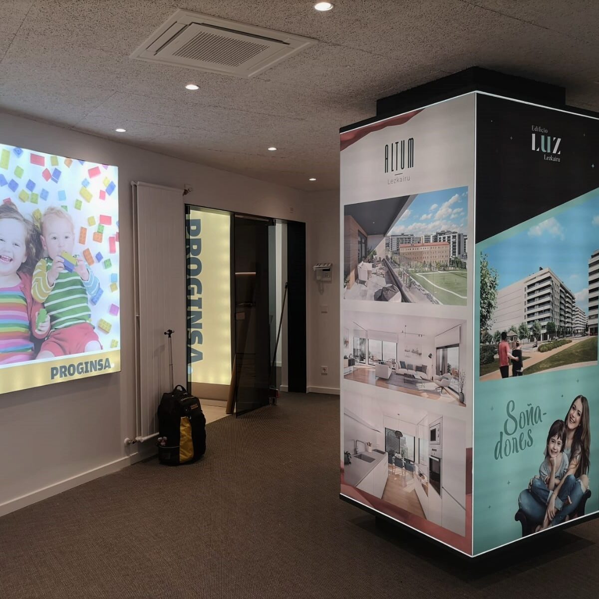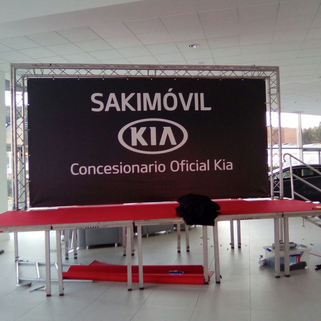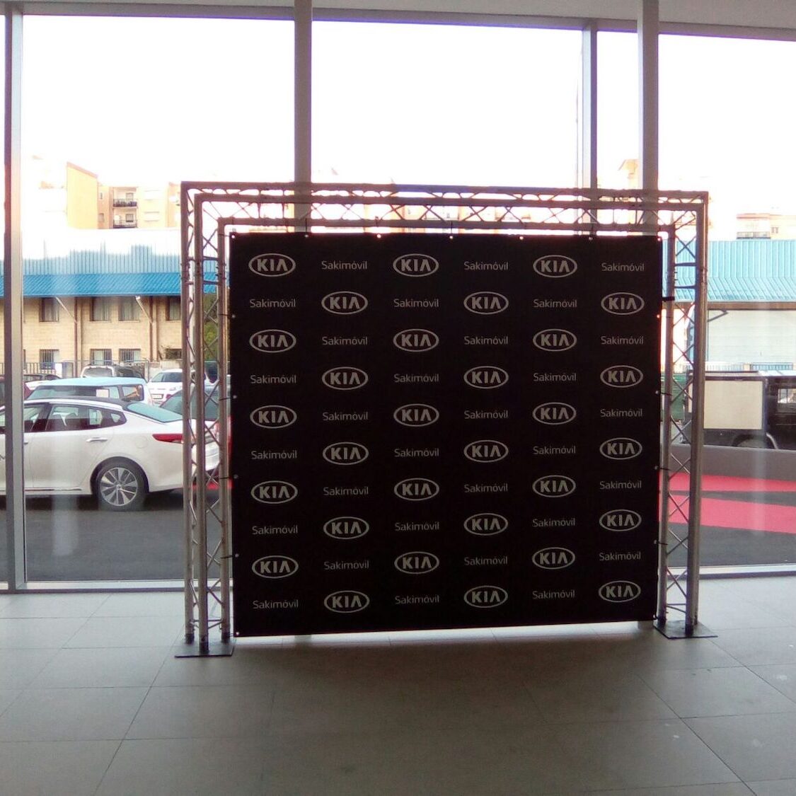 Tenemos cubos expositores iluminados de 1,20x3m, con contrapeso de 450kg para garantizar la seguridad.